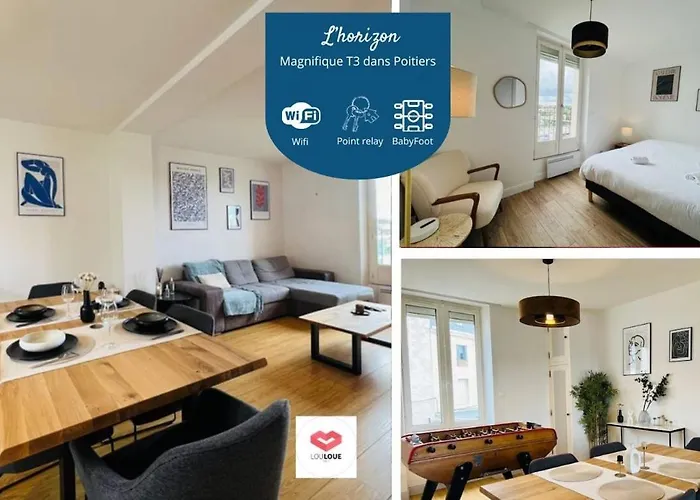 Located about a 5-minute walk from Eglise Saint-Porchaire de Poitiers, the 1-room L'Horizon - Spacieux Et Idyllique T3 gives quick access to various tourist spots in the vicinity.